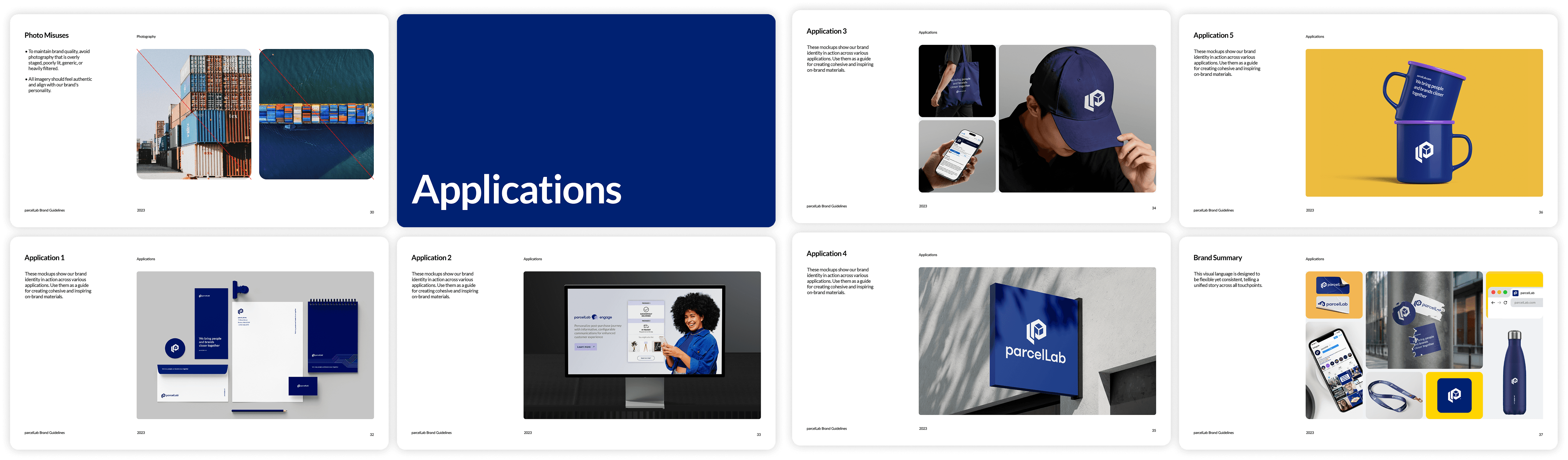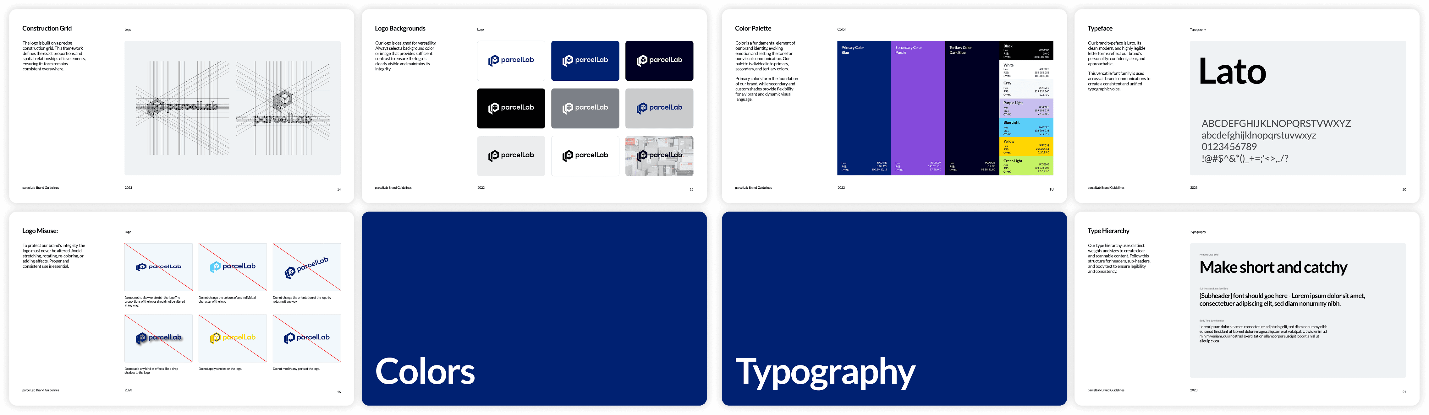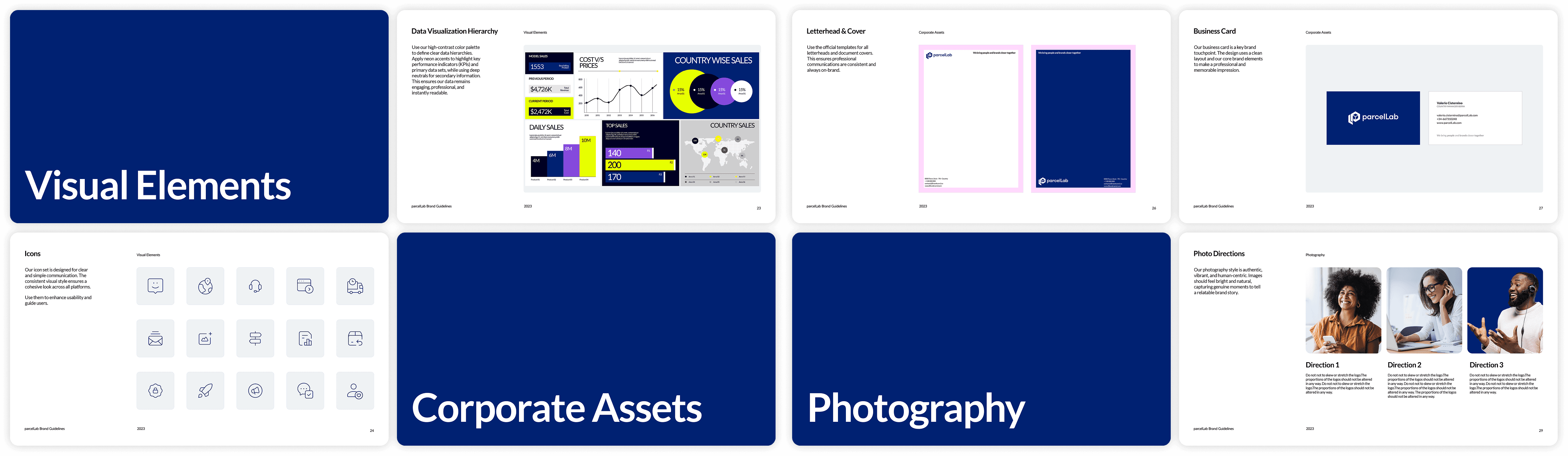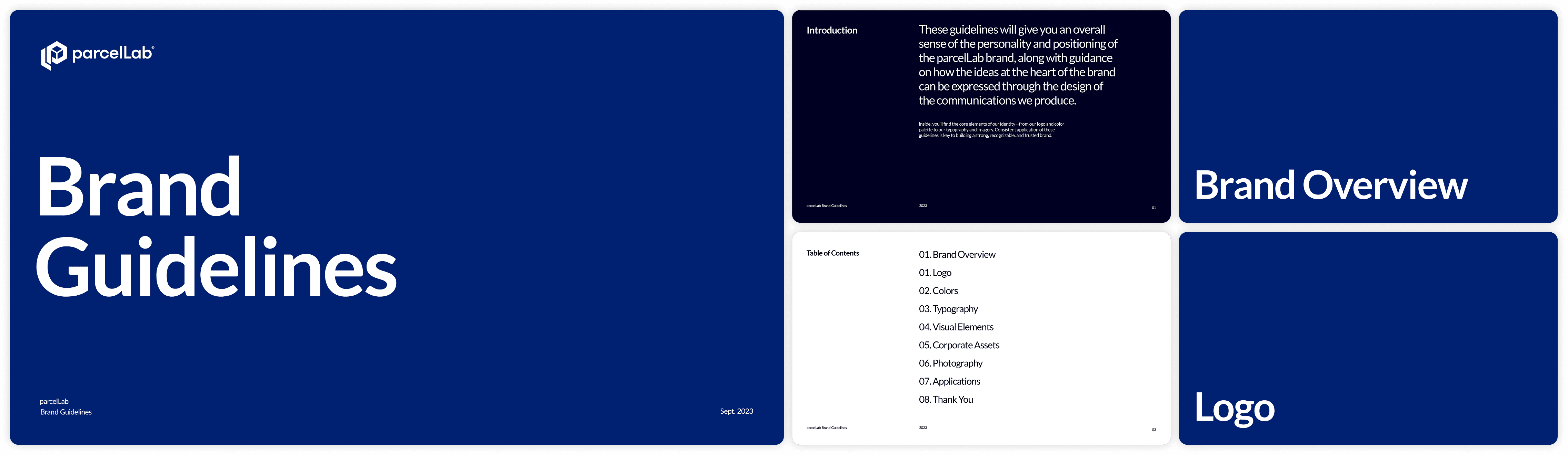 I created parcelLab's brand guidelines from scratch — a complete document covering brand overview, logo usage, typography, colour, visual elements, photography, and tone of voice. It became the single source of truth for every team in the company, from marketing to sales to product.