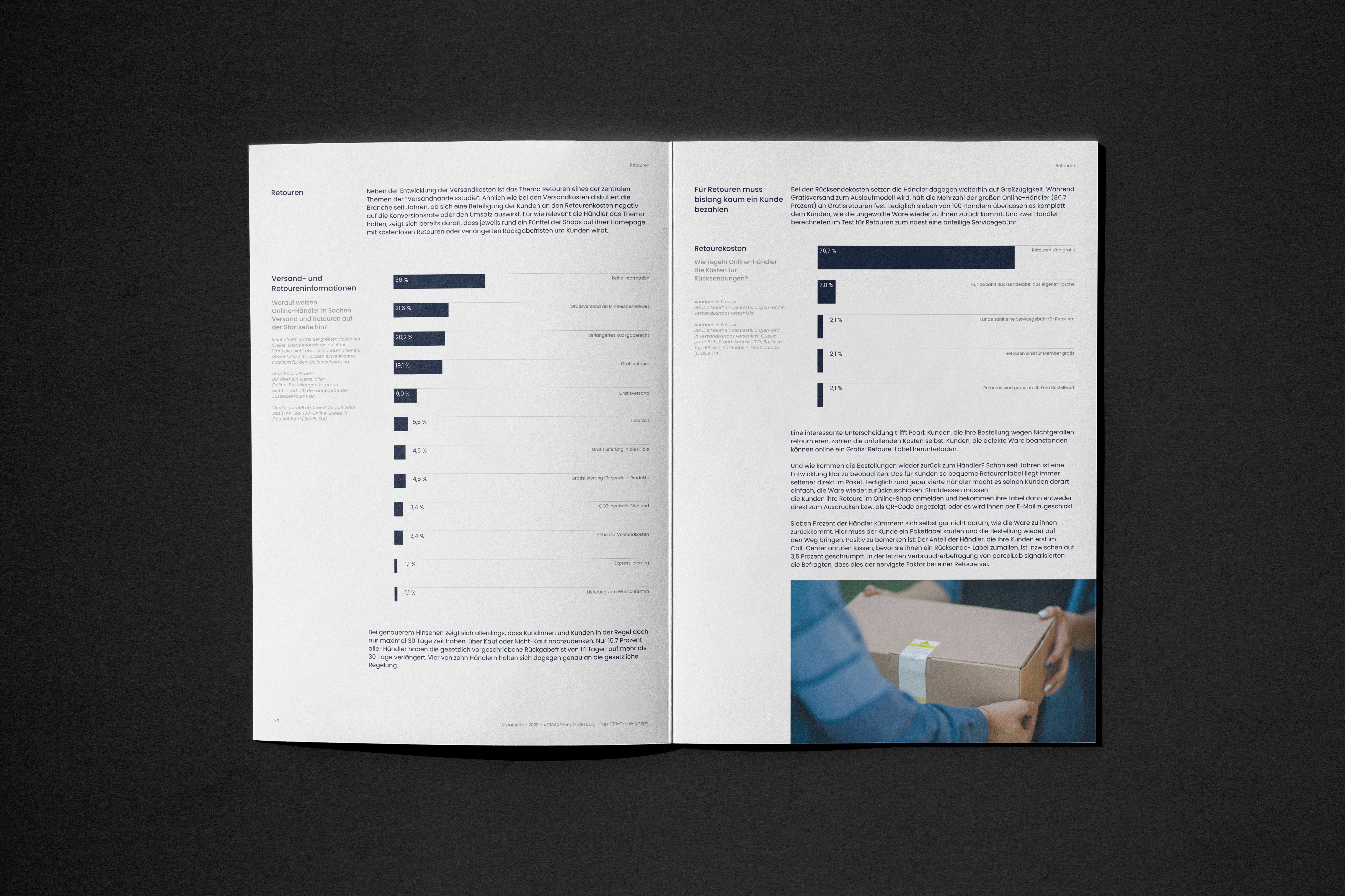 parcelLab publishes an annual benchmarking study analysing the post-purchase experience across hundreds of online retailers in Germany, the UK, and the US. The 2023 edition — the Versandhandelsstudie — examined how Germany's top 100 e-commerce brands handle everything from shipping and delivery notifications to returns and customer service.